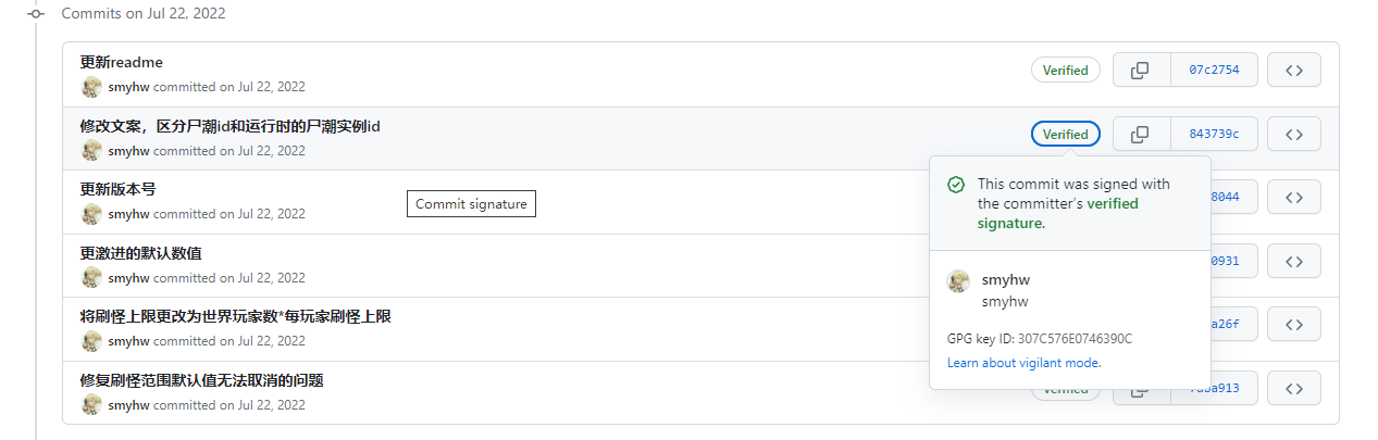 GITHUB会给可以被验证的提交打上标记,像是这样: